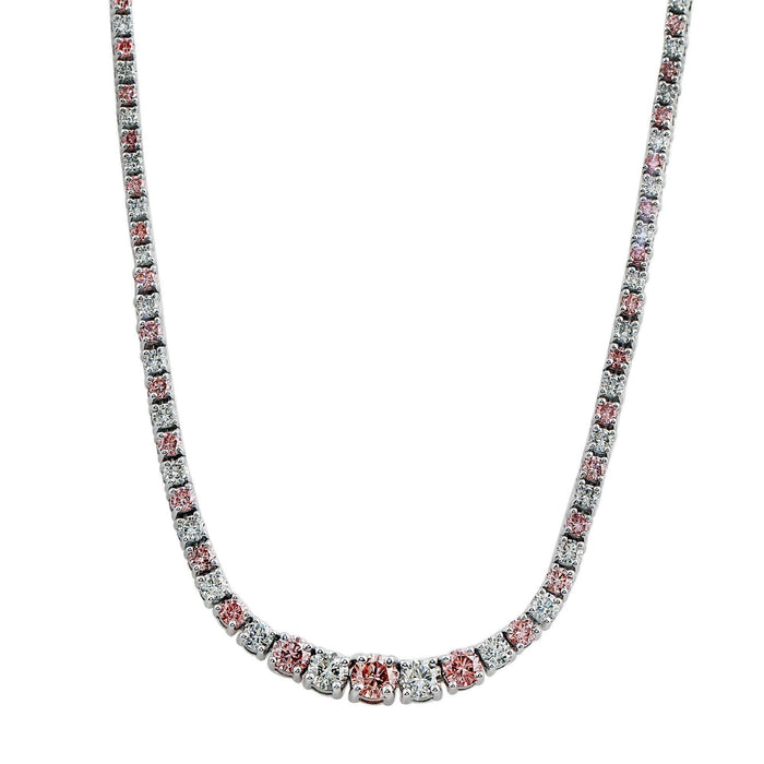This exquisite Sage Necklace showcases an exquisite mix of ethics and beauty. It contains alternating pink and white diamonds of H-I color and VS-SI clarity set in a 16-inch chain, with a total diamond weight of 10.0 carats. Perfect for special occasions or everyday wear.