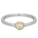 An exquisite choice that showcases a sparkling 0.15 carat round lab grown diamond solitaire in a bezel 18K yellow gold setting merged into a polished sterling silver ring. The color is H-I with a clarity of VS-SI ranking. This ring is a simple yet versatile choice and one you can build upon. Traditional and vintage bands on either side or other style, even custom made accompanying rings for a personal touch.