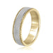 The Simon Wedding Band is ideal for your special day. Crafted from high-quality metal, 6mm width and featuring a satin finish, intricate etching, and a reversed milgrain separation with gold plating, this band offers premium durability and classic sophistication. Perfect for lasting memories and a lifetime of love.