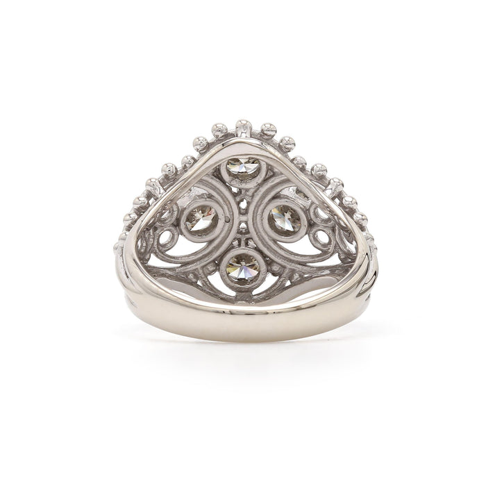 Beautifully crafted in 14K white gold, this exquisite filigree ring is set with round smoky colored lab grown diamonds. A beautiful open worked and beaded design completes this 1.00 carat total weight. This captivating choice is certain to be worn often.