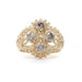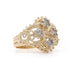 Beautifully crafted in 14K yellow gold, this exquisite filigree ring is set with round smoky colored lab grown diamonds. A beautiful open worked and beaded design completes this 1.00 carat total weight. This captivating choice is certain to be worn often.