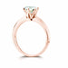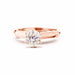 An exquisite choice that showcases a sparkling round lab grown diamond solitaire in a timeless six prong solid setting merged into a polished 14K rose gold shank. The color is I-J with a clarity of VS-SI ranking. This ring is a simple yet versatile choice and one you can build upon. Traditional wedding bands on either side or other style, even custom made accompanying rings for a personal touch.