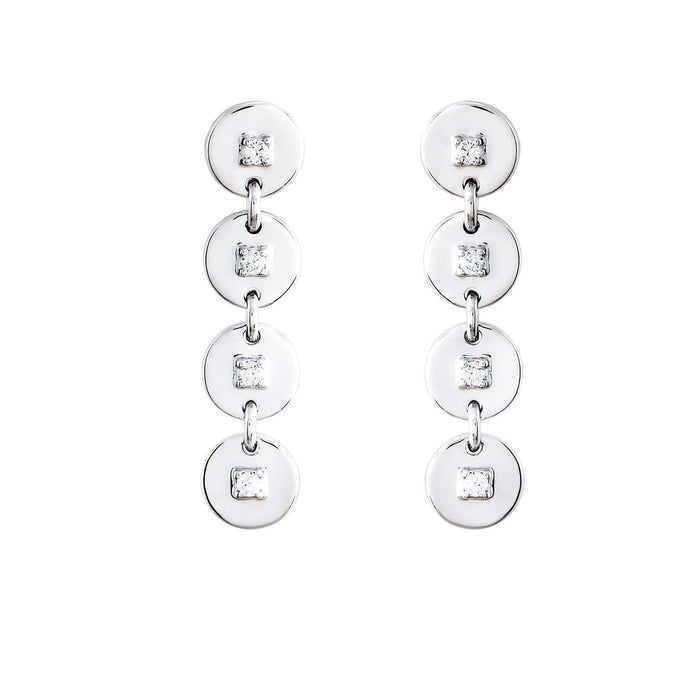 Enhance your elegance with our Solitaire Drop Earrings. Featuring G-H/VS-SI lab grown diamonds, these beautiful earrings boast four delicate diamonds elegantly centered on sterling silver disks. Elevate any look with the sparkle and sophistication of 1/7Ctw of diamonds.