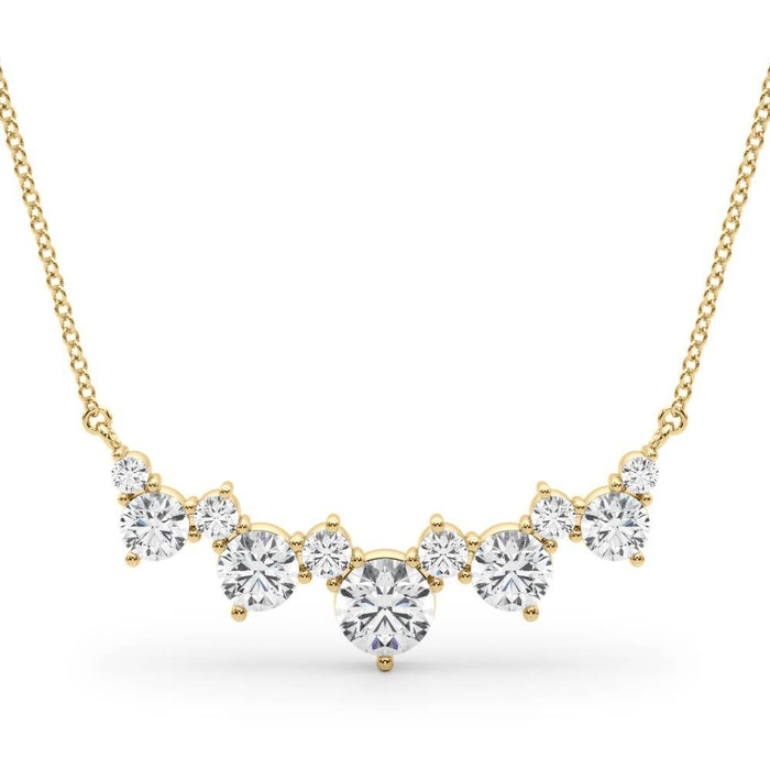 Introducing the Special Round Curve Necklace, featuring 7/8Ct total weight of dazzling round lab grown diamonds on a beautifully curved 14k gold design. Elevate your style and make a statement with this truly special piece. Treat yourself or someone you love to the luxury of lab grown diamonds!