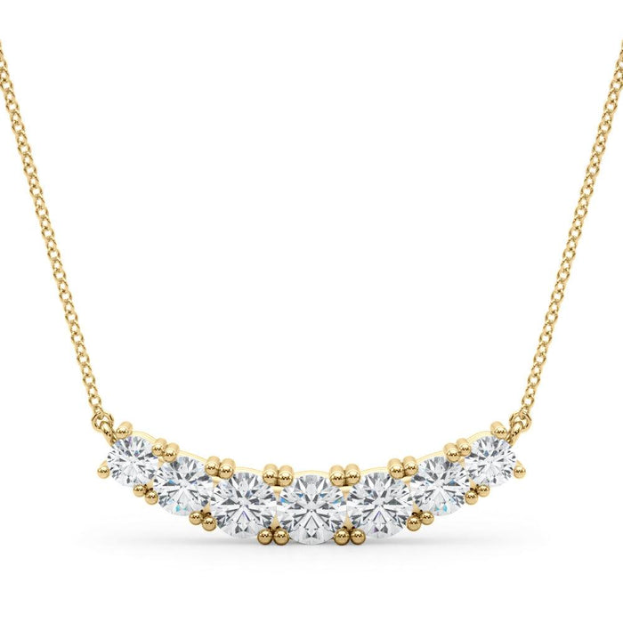 Experience the timeless elegance of our special journey bar necklace. Crafted with luxurious 14 karat gold and adorned with sparkling 7/8 total carats of lab grown diamonds, this necklace is the perfect addition to any outfit. Make a statement with this classic and sophisticated piece.