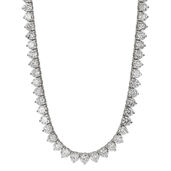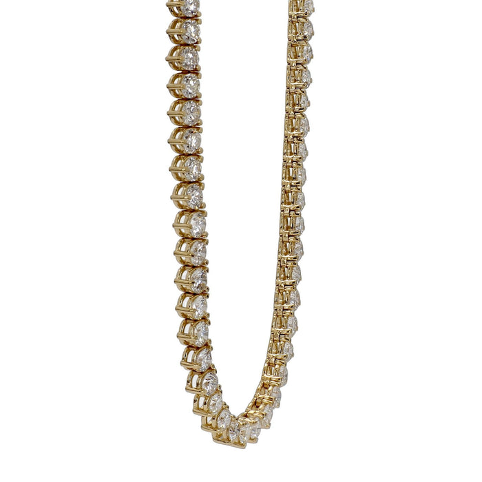 A shimmering 15.0 carat total weight lab grown diamond necklace that's a delightful option for dressy or casual attire. Crafted in 14K yellow or white gold, this tennis style design of sparkling diamonds in a 17.5 inch necklace. Radiant with a color ranking of H-I and VS-SI diamond clarity and secures with a tongue and groove clasp, it's a great way to add a pop of shimmer to your attire.