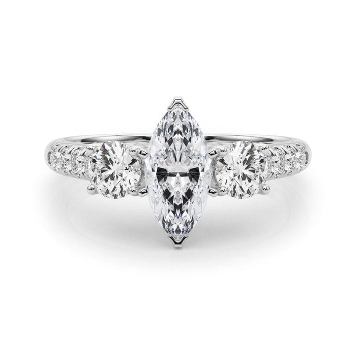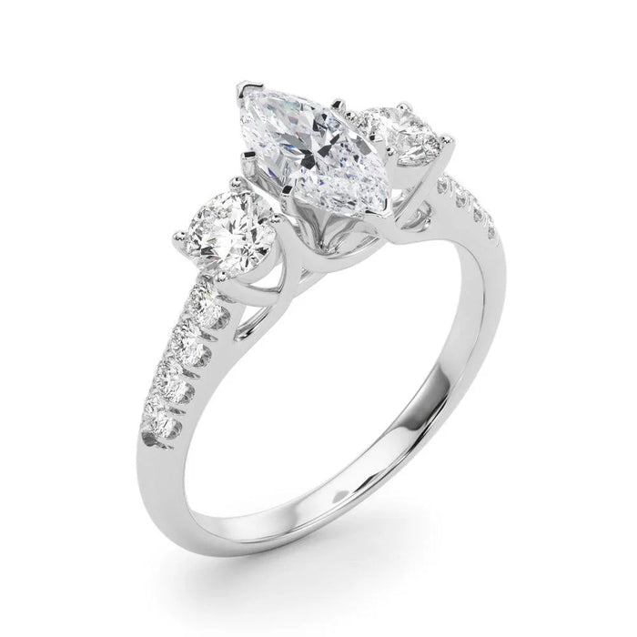 Our Tina 3 Stone Setting features 3/4 carat side lab diamonds in F-G color and VS-SI clarity, set in either gold or platinum for long-lasting shine and durability. Perfect for sparkle and subtle sophistication.