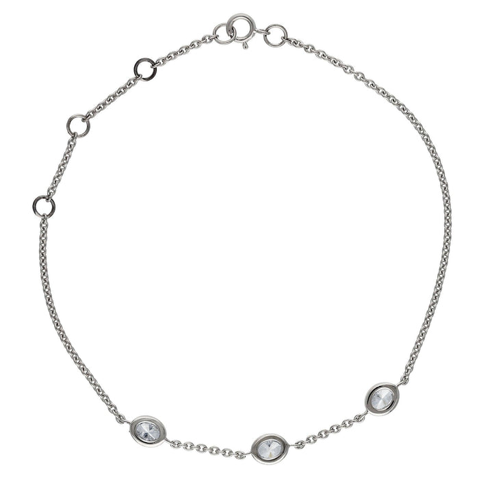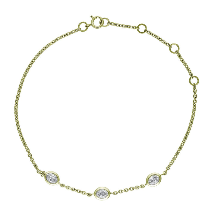 The adjustable and timeless beauty of the Tisha Oval 3-Stone Bracelet! Crafted with lab-grown oval diamonds of G-H VS-SI quality, bezel set and held securely in place with a spring-ring clasp, this bracelet adds an exquisite sparkle to whatever you wear. Starting with a hoop at 6 inches and adding a hoop at 1/2inch stations gives the adjustability for style and perfect fit. Delicate and elegant, it’s sure to make you feel beautiful inside and out.