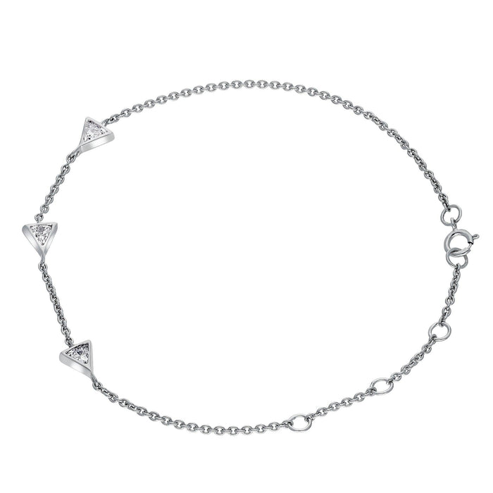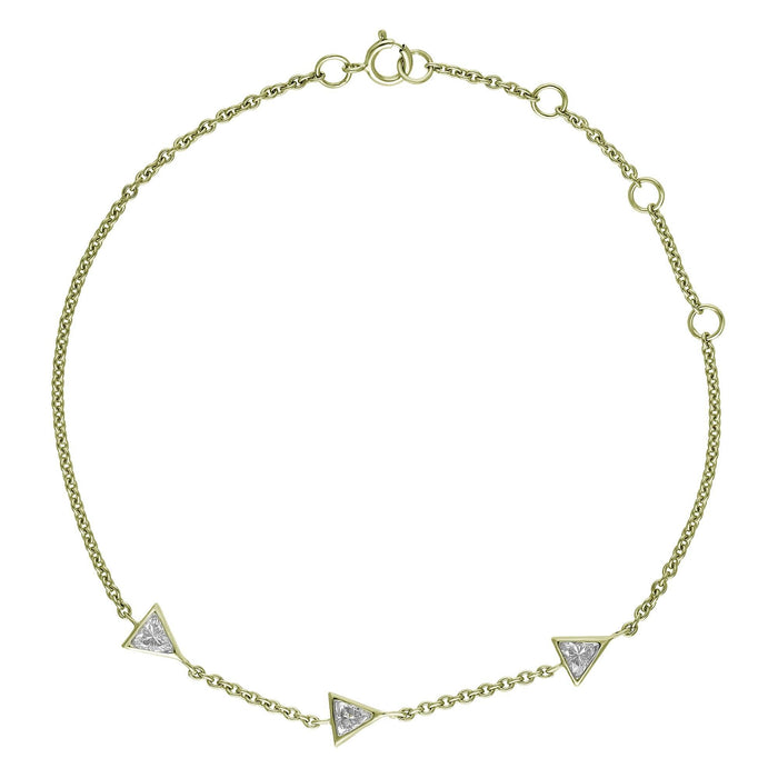 The adjustable and timeless beauty of the Tisha Trillion 3-Stone Bracelet! Crafted with lab-grown trillion diamonds of G-H VS-SI quality, bezel set and held securely in place with a spring-ring clasp, this bracelet adds an exquisite sparkle to whatever you wear. Starting with a hoop at 6 inches and adding a hoop at 1/2inch stations gives the adjustability for style and perfect fit. Delicate and elegant, it’s sure to make you feel beautiful inside and out.