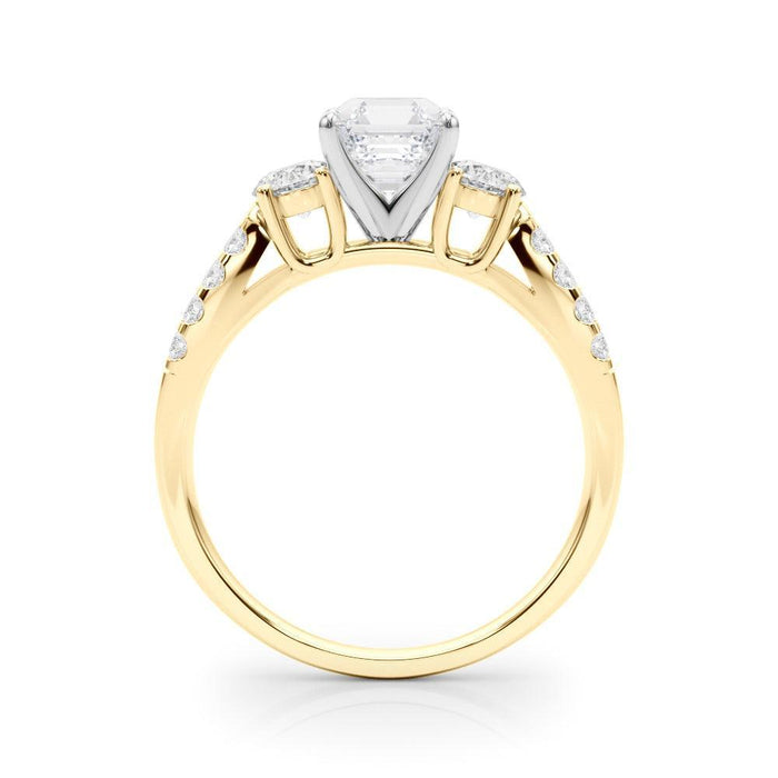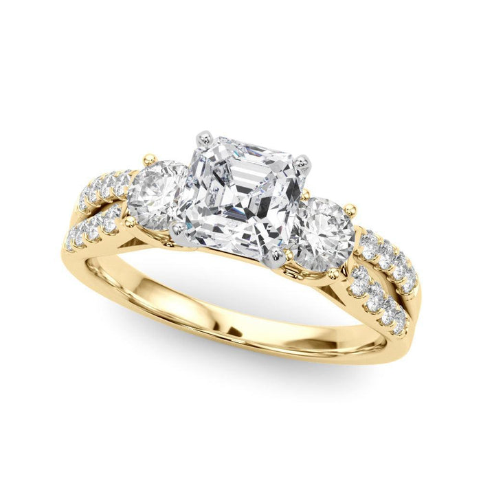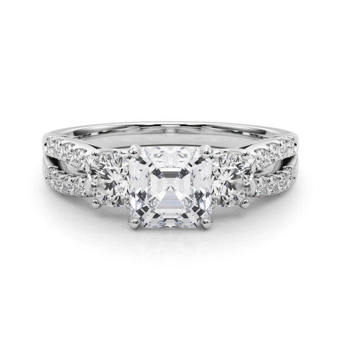 Experience the beauty of the Tracy 3 Stone Setting. Its exquisite gold or platinum band is masterfully crafted with 1/2 carat lab diamonds of F-G color and VS-SI clarity, making the piece sparkle like never before. With a split shank for added beauty, it's a stunning piece of jewelry you'll treasure forever!