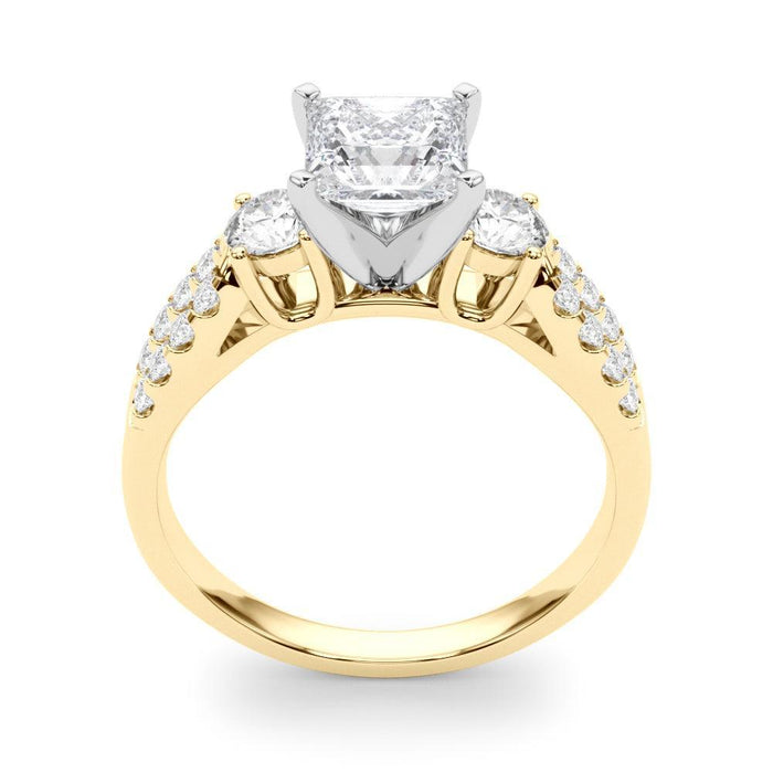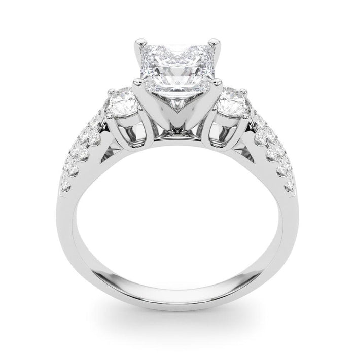 Discover elegance with a daring edge in the Tracy 3 Stone Setting. Its princess center stone and split shank lend a classic touch, while its gold or platinum band gives it a modern twist. Include this show-stopping addition to your wardrobe!