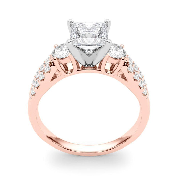 Depending on the choice of your center lab created diamond, the setting diamond weight will adjust proportionately to keep the same desired style. Smaller diamonds or different shaped diamonds will cause the prong count to adjust or the whole center will adjust to the best fit for that loose lab diamond you chose.