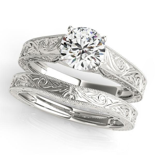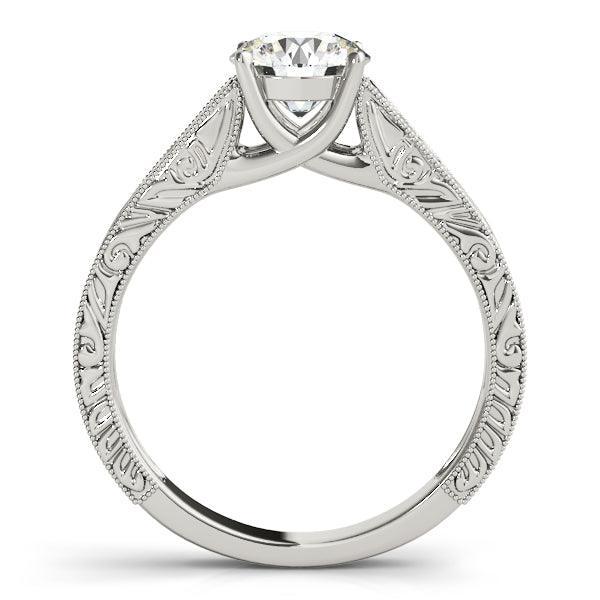 The Victoria Solitaire Setting is crafted with a distinct Victorian style, featuring intricate milgrain and etched work. It's best to order the matching band for the right curve at the same time, allowing you to create a stunning wedding set. Perfect for those seeking a timeless look.