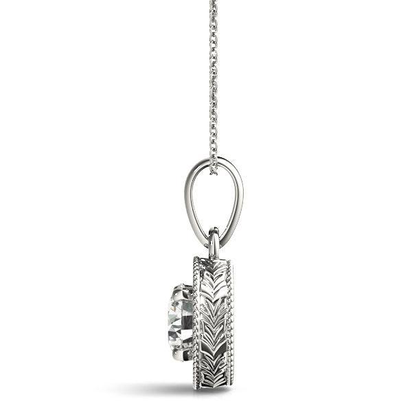 Add a touch of elegance with our vintage style diamond necklace. Featuring a stunning 1/2 carat round lab grown diamond, this solitaire pendant is perfect for any occasion. Easily accessorize with the 18 inch box chain and spring ring clasp. Simple, yet chic!