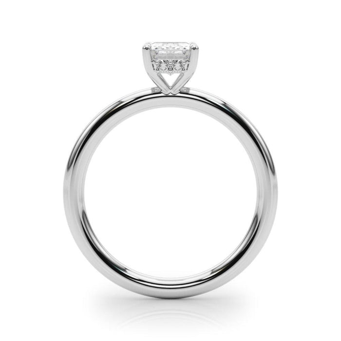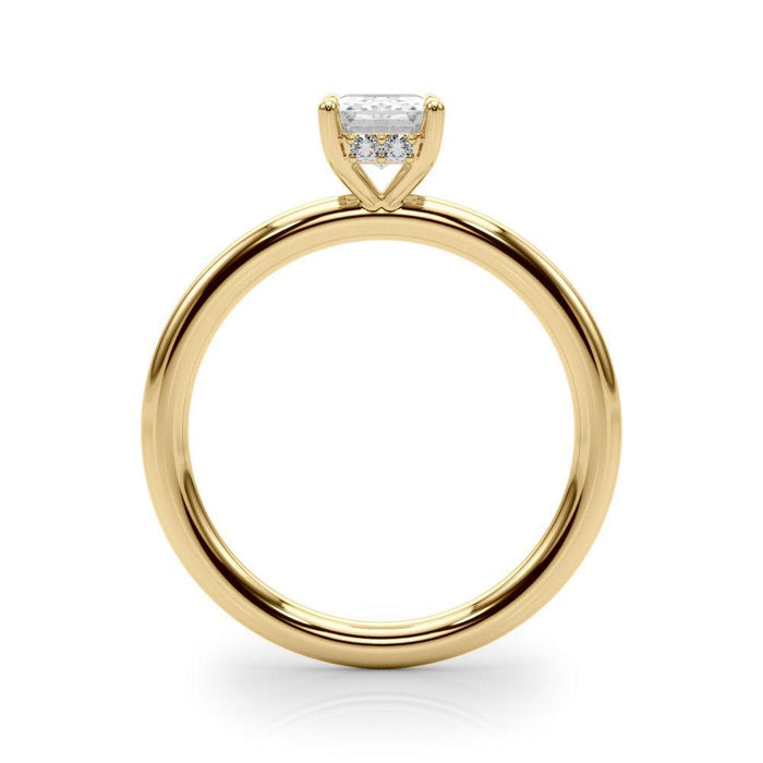 This stunning Vintage Elizabeth 1.0 carat lab grown emerald diamond in K VS color/clarity features 1/10Ct. T.W lab-grown diamond accents in a hidden halo for a beautiful, timeless brilliance and sparkle. Expertly crafted to last for generations, this engagement ring is the perfect way to add a vintage flare to this special occasion. This warm K color center diamond comes in faint yellow and light brown earth tones. It's off white tone gives it that vintage look.