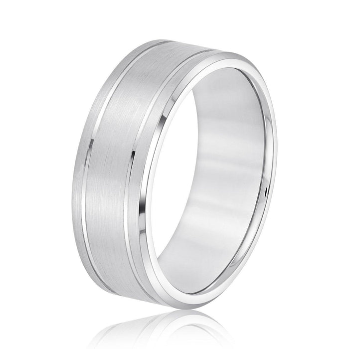 The Wesley Wedding Band is the perfect choice for couples looking for timeless elegance. Crafted from luxurious gold or platinum with an eye-catching pin stripe detail and satin finish, this sophisticated ring will be a treasured symbol of your special day for years to come.