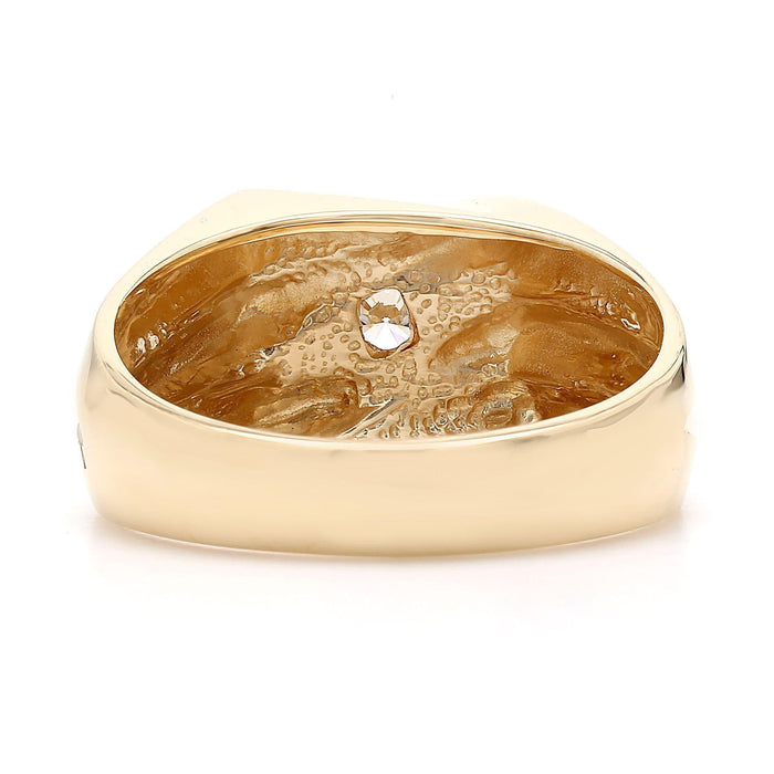Sculpted details on this handsome lab grown diamond ring complete this handsome look. Expertly crafted in 14K gold, this distinctive design showcases a 1/5 carat diamond solitaire in a sleek angular channel frame. A contemporary look he'll treasure, this ring is finished with a bright polished shine and has a lab grown diamond I-J color and VS-SI clarity ranking.