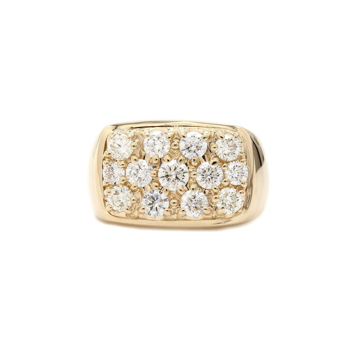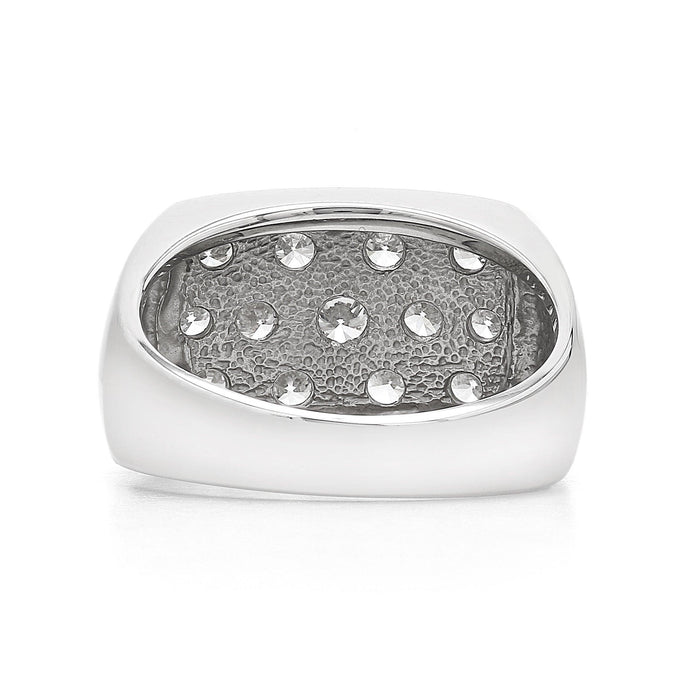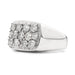 A sophisticated style, this handsome lab grown diamond ring is just for him. Expertly crafted in 14K white or yellow gold, the eye is drawn to the 2.00 carat total weight cluster of shimmering round lab grown diamonds at the center of the ring. High polished finish adds a smooth feel while wearing this design. Each round lab grown diamond has a I-J color and VS clarity ranking.