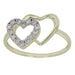 A brilliant classic look, this lab grown diamond double heart ring is dazzling. Featuring a swirl of sparkling line lab grown diamonds totaling 1/4 carat with a F-G coloring and VS-SI clarity for one heart. A high polished heart binding together. It's slender 14K gold style can add a flare to any outfit, day or night.