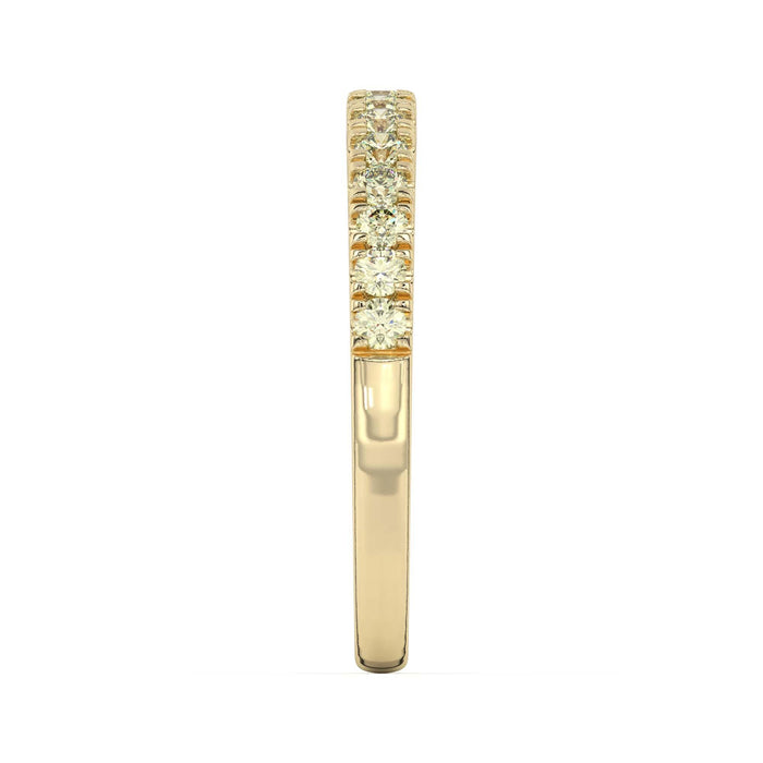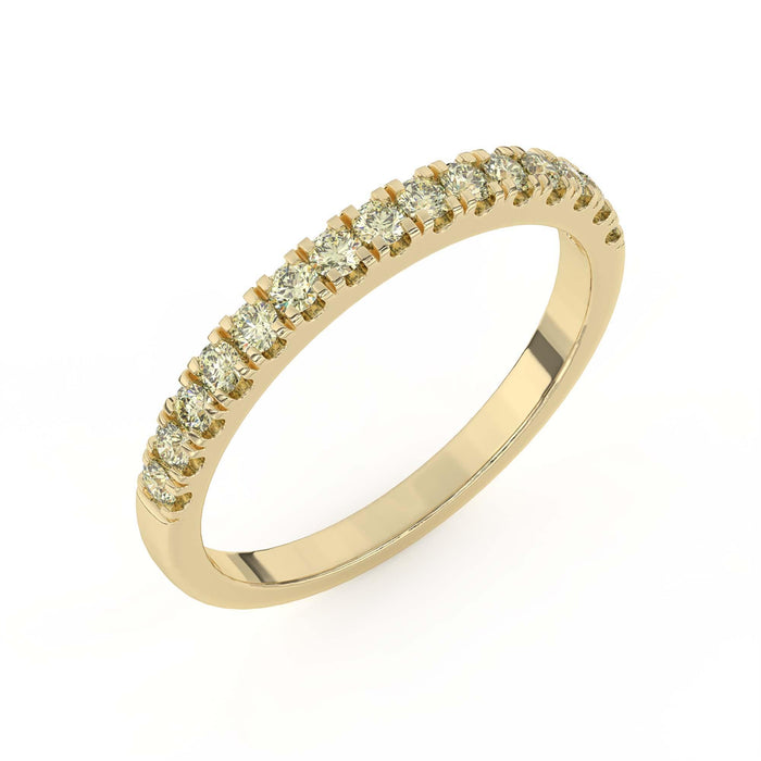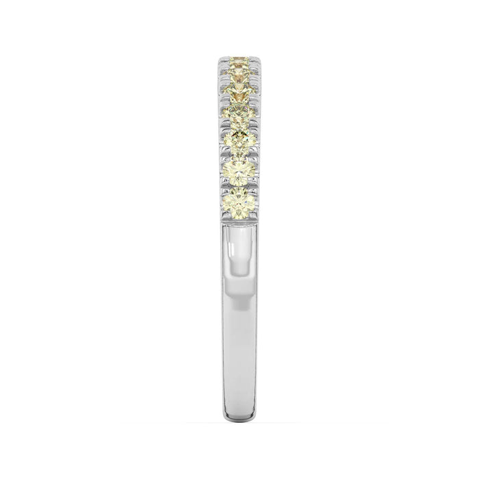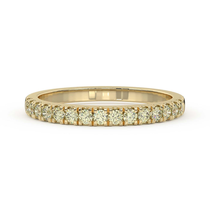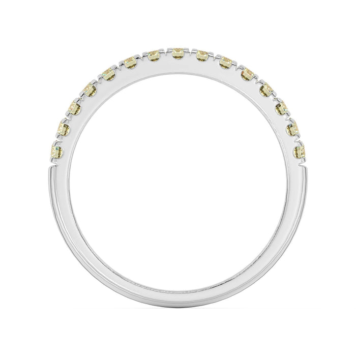 Simply sophisticated, this yellow lab grown diamond band is a stack-able style to wear with anything. Fashioned in 14K gold, this slim design features stunning yellow lab created diamonds. A lovely look, this ring is buffed to a brilliant luster.